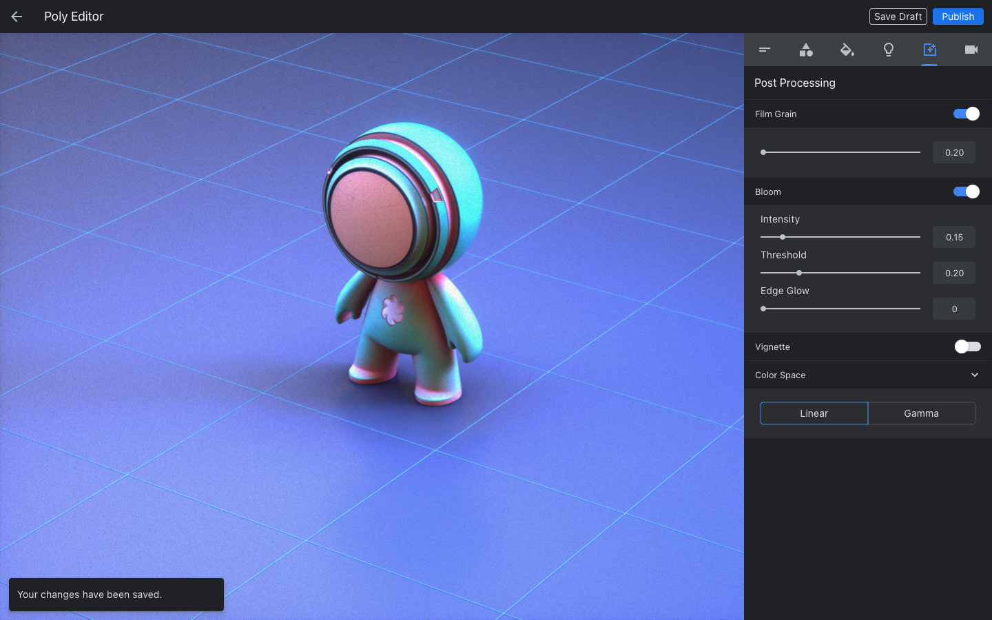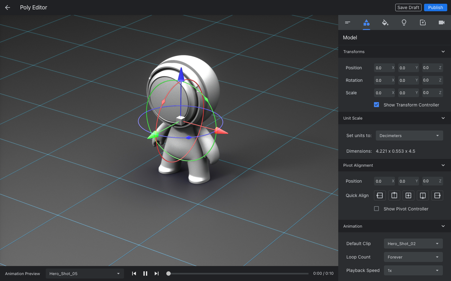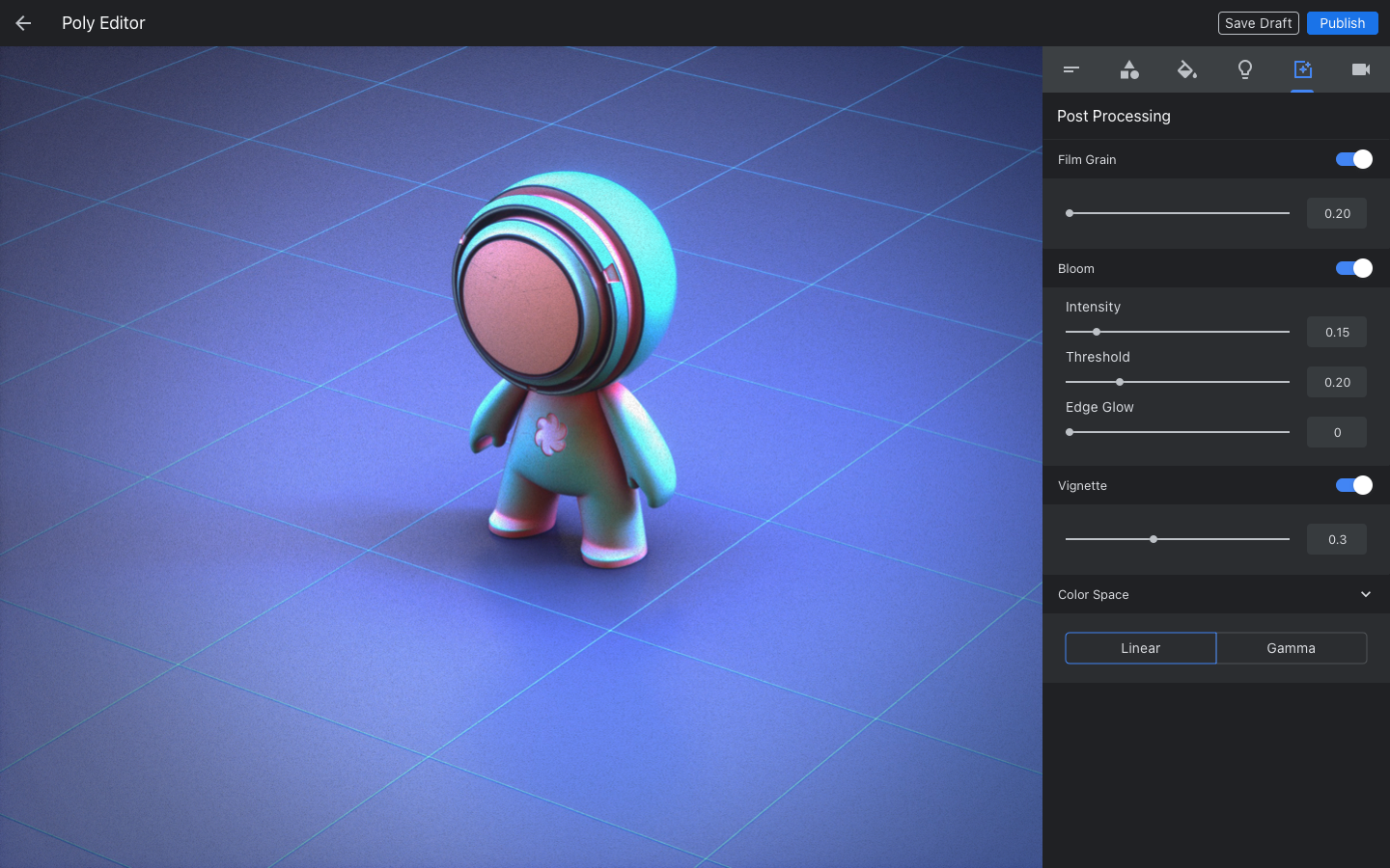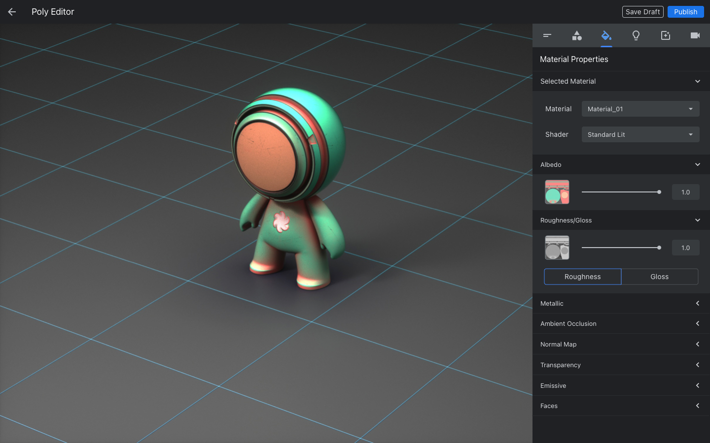 The Poly Editor was Google Poly’s core 3D asset configuration and publishing tool, designed to make it easy for users to prepare high-quality models for AR, VR, and web-based experiences. Built directly into the Poly platform, the editor gave creators, ranging from hobbyists to professional developers, a lightweight, browser-based environment where they could fine-tune, present, and even allow other users to remix their work.