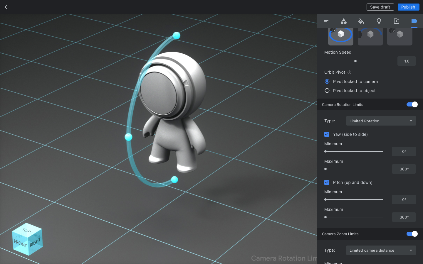 The camera controls gave creators had precise control over how their models were viewed through a flexible camera system, including: